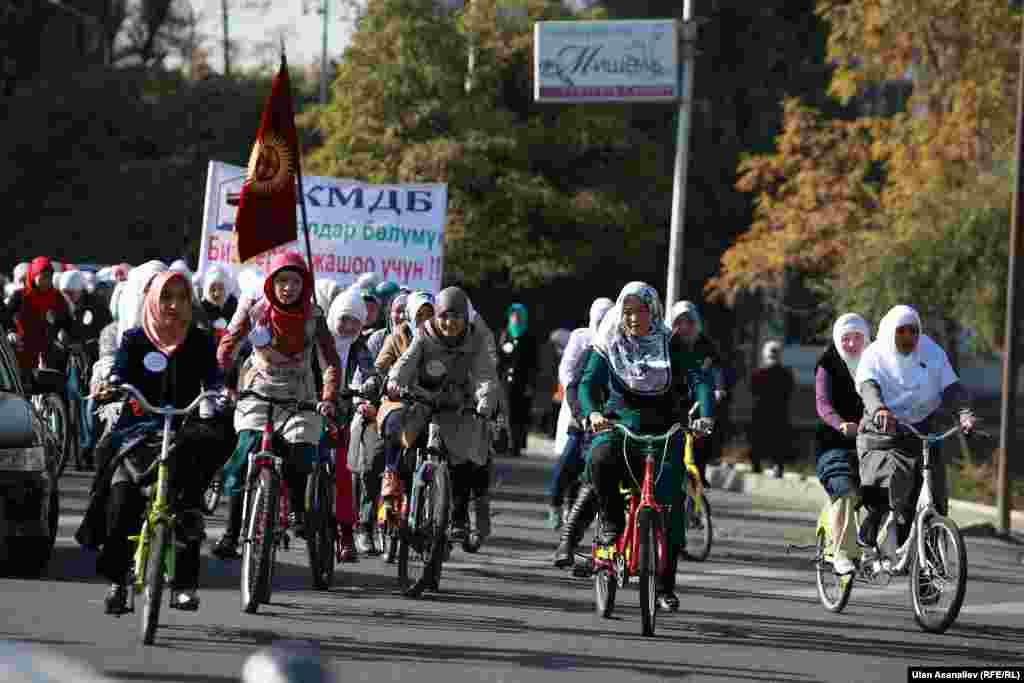 Женское крыло Духовного управления мусульман Кыргызстана и общественная организация кыргызстанских мусульманок «Мутакалим» организовали 5 ноября в Бишкеке пеший ход и велопробег от отеля «Ак-Кеме» до Республиканского центра крови в поддержку здоровья женщин Кыргызстана. Участницы акции сдали кровь в Республиканском центре крови в знак поддержки тысячи кыргызстанских женщин, страдающих малокровием. Это первая массовая публичная акция кыргызстанских мусульманок за годы независимости. "Азаттык", Кыргызская служба РСЕ/РС