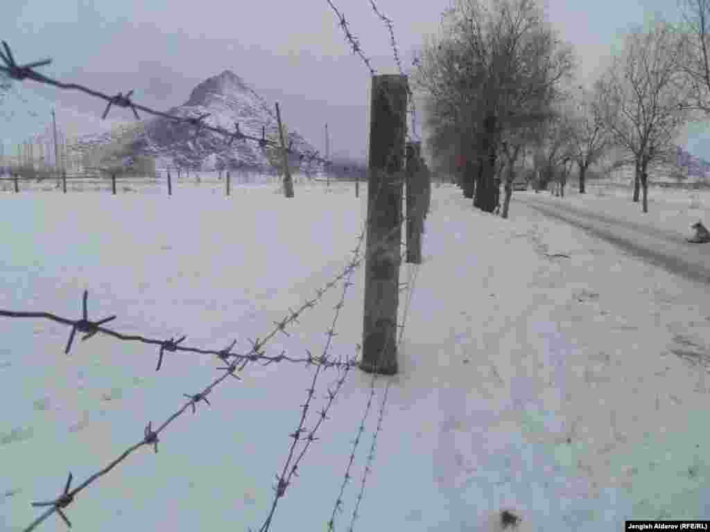Государственная Пограничная служба КР начала установку инженерных сооружений на границе с Узбекистаном в районе приграничных сел Чарбак и Хушьяр. Фото Жениша Айдарова, "Азаттык", Кыргызская служба РСЕ\РС