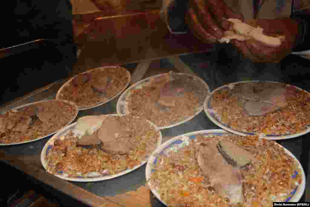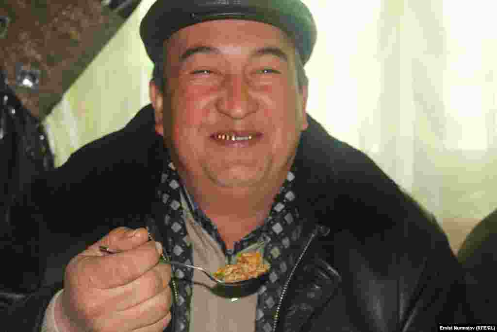 Как сообщил "Азаттыку" один из организаторов акции Дилмурад Ишанов, идея организовать дружеский плов для представителей узбекской и кыргызской общины Оша зародилась недавно. "В преддверии новогодних праздников мы хотели организовать такое мероприятие, которое бы объединило всех жителей нашего города за одним дасторконом. Что нас всех объединяет в Оше? Это наш знаменитый на весь мир ошский плов", - сказал Дилмурад Ишанов. Фотографии Эрниста Нурматова, "Азаттык", Кыргызская служба РСЕ\РС