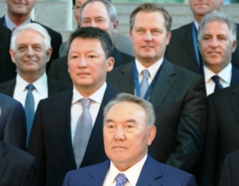 Президент Казахстана Нурсултан Назарбаев фотографируется вместе с участниками Совета иностранных инвесторов, рядом слева его зять Тимур Кулибаев, председатель правления фонда «Самрук-Казына». Астана, 18 мая 2011 года.